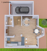Vstup na pozemok je riešený elektrickom vstupnou bránou a tiež interierové parkovanie pre 3 autá má elektrické garážové dvere.
